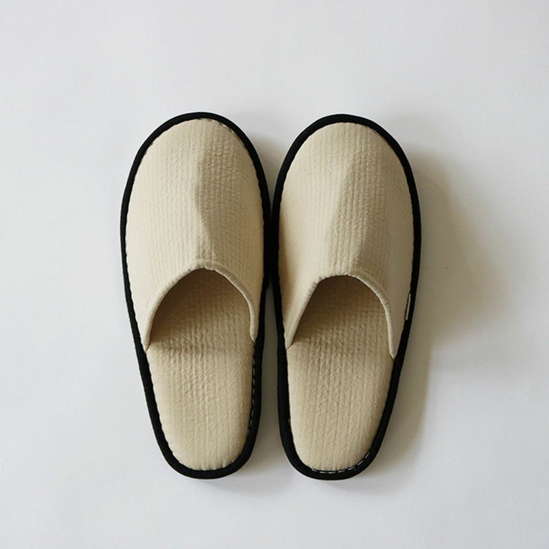足を入れた瞬間に感じる、やわらかな包み込みと軽やかな履き心地。凹凸のある質感は肌離れもよく、素足でも快適にお使いいただけます。