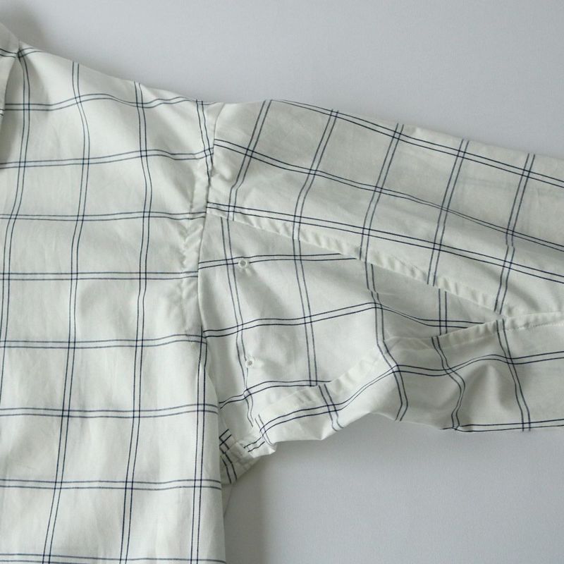 脇の下に菱形のマチをつけ、腕の上げ下げし易く、裾が上がりにくいシルエットになっています。脇マチパーツには菊穴付きで通気性も◎