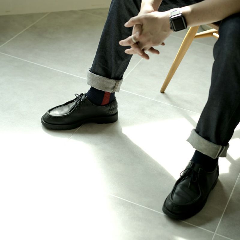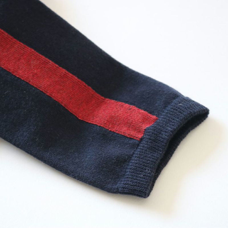 スーツスタイルにも使いやすい配色で、裾と革靴との間からちらっと見えるラインがおしゃれ。カジュアルなデニムパンツの足元にも相性がよく、季節問わず、組み合わせを変えてお楽しみいただけるアイテムになっています。