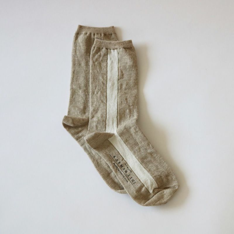 星座になぞらえた靴下を生み出す、KARMAN LINE。こちらは双子座を意味するGeminiと名付けられたリネン素材の靴下です。