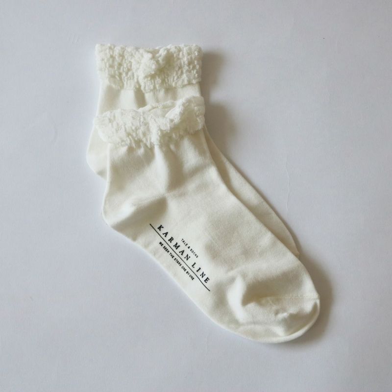 星座になぞらえた靴下を生み出す、KARMAN LINE。こちらは魚座を意味するPiscesと名付けられたフリル靴下です。