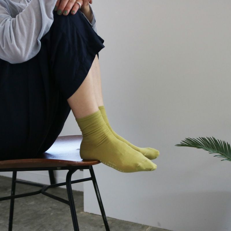 ハイゲージの編機で薄手に編み立てているので、夏はもちろん家でのリラックスタイムも心地よく履いていただけます。プレーンなデザインのCANCERはどのようなスタイリングにも合わせやすい一足です。