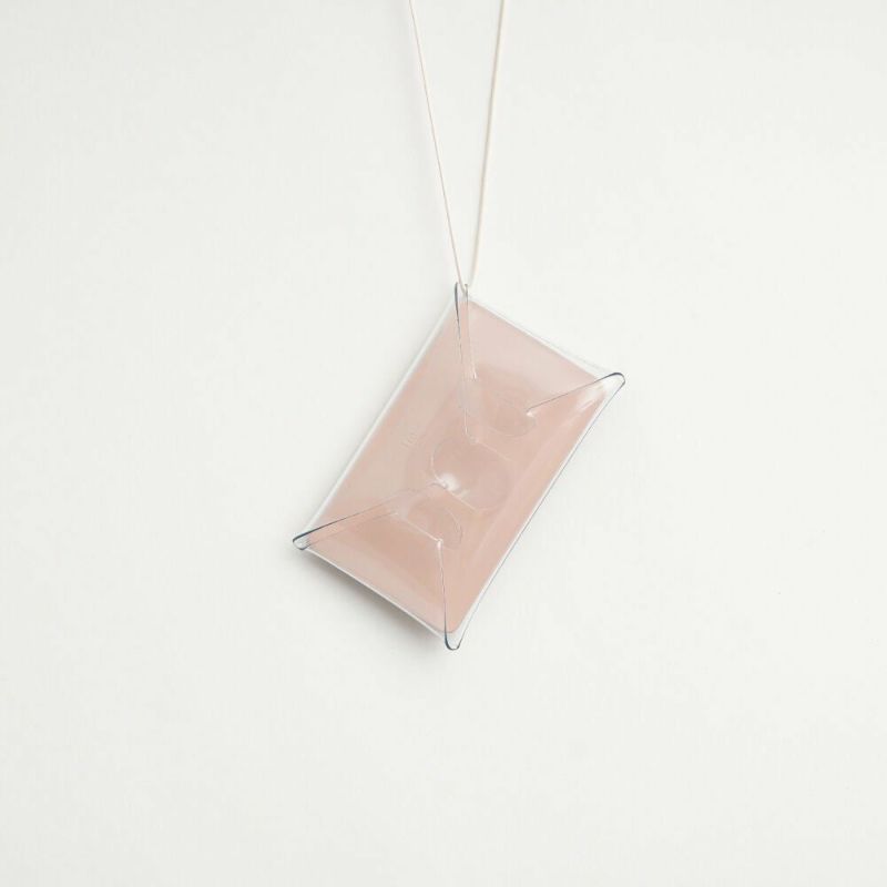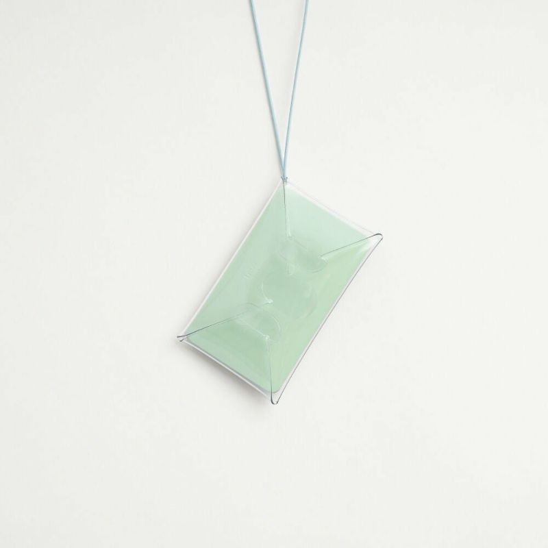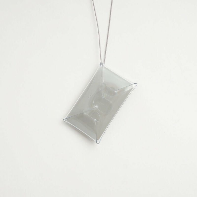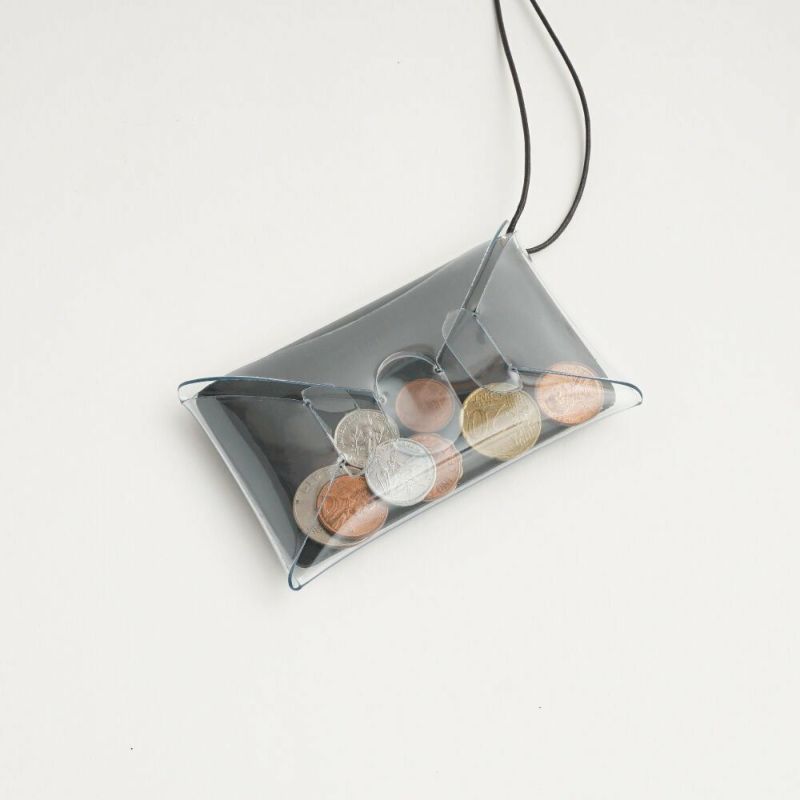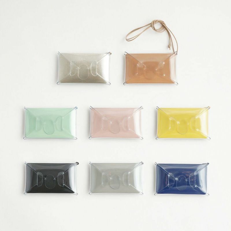 本体は1mm厚の透明PVC、中仕切りは牛革を使用。