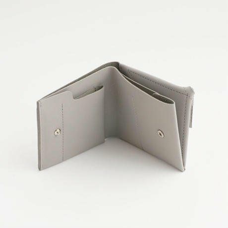 内側に3箇所あるカードポケットはカードを縦に差し込む取り出しやすい構造のシンプル且つ機能的に設計された1枚の革を折り込んだスリムな二つ折り財布です。