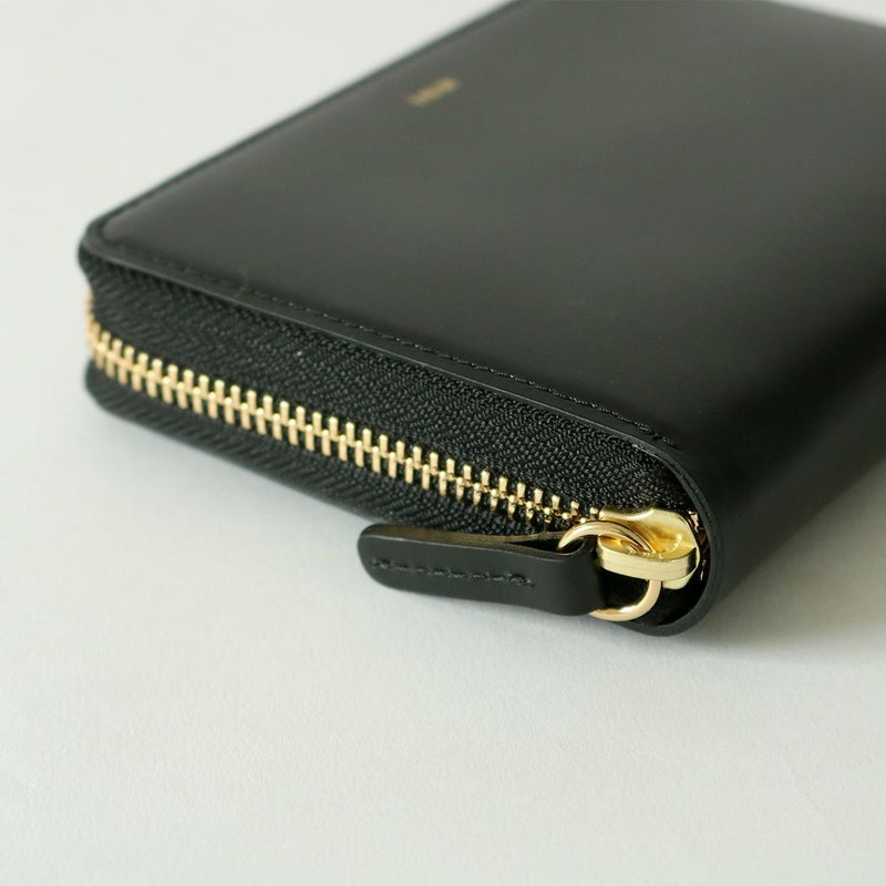 通常このサイズのお財布は、紙幣を3つ折りにして収納するのが一般的ですが、両端の内装ポケットを左右貫通させることで、2つ折りの紙幣でも底に滑り込ませて収納ができるようにしました。