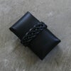 折紙に着想して設計されたシンプルな一枚革のケースに、革を細かく編み込んだ帯のようなリングで蓋をホールドする形状。編み込みは、アミ族の伝統的な織物技術からインスパイアされ作られています。