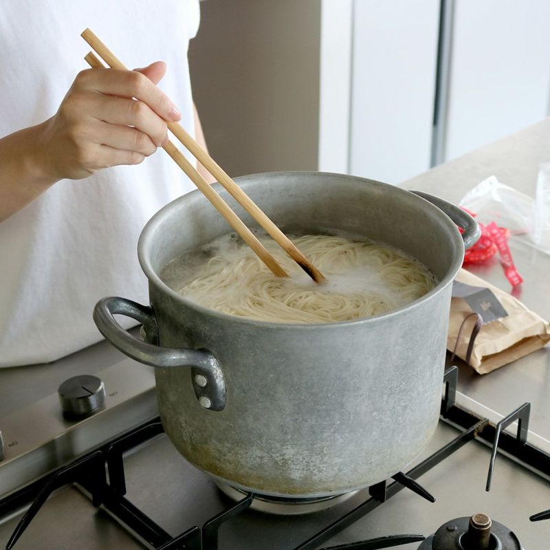 細口と太口からお選びいただけます。細口はサッと2分の茹で時間。オリーブオイルやチーズ、トマトなど、夏野菜との相性もぴったりなので、いつもの素麺とは一味違うレシピを試すのもオススメです。