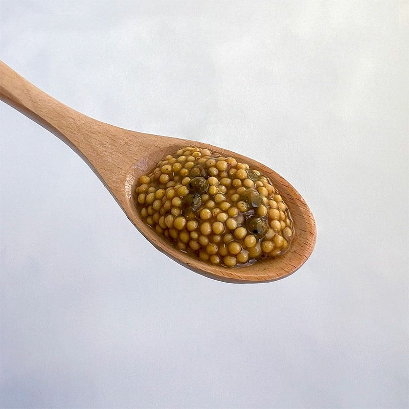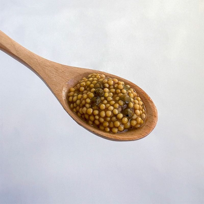 肉料理、お刺身やソテーなどメインディッシュの薬味としてはもちろん、野菜やパンとも相性抜群。マヨネーズやペースト状のマスタードと混ぜて粒々感を加えてソースにするなど、幅広く使うことができます。