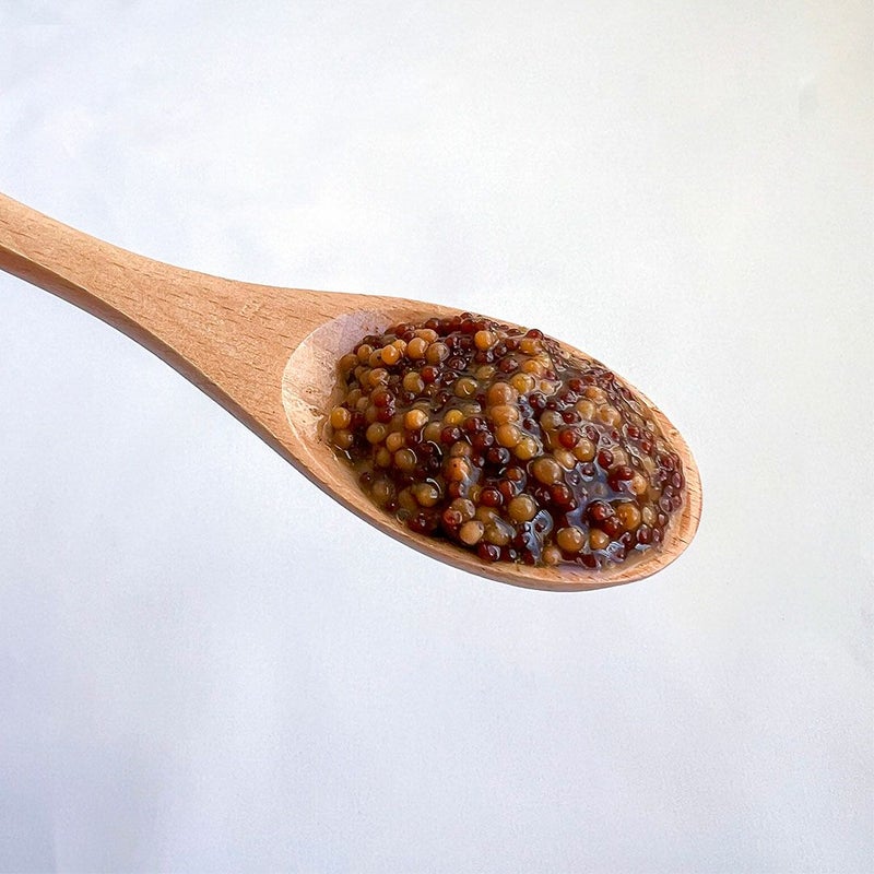 粒状のマスタード・シードをリンゴ酢で漬け込み、生胡椒でほんのりアクセントを効かせた定番のマスタード!普通のマスタードと比べると驚くほどプチプチとした食感がたまらない。