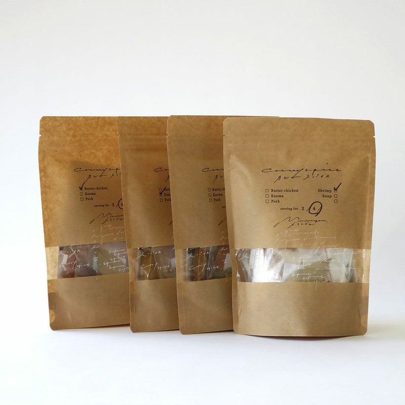 それぞれ4人前6皿分のスパイスキットです。完成したカレーが余った時は、小分けにして冷凍保存がおすすめです。