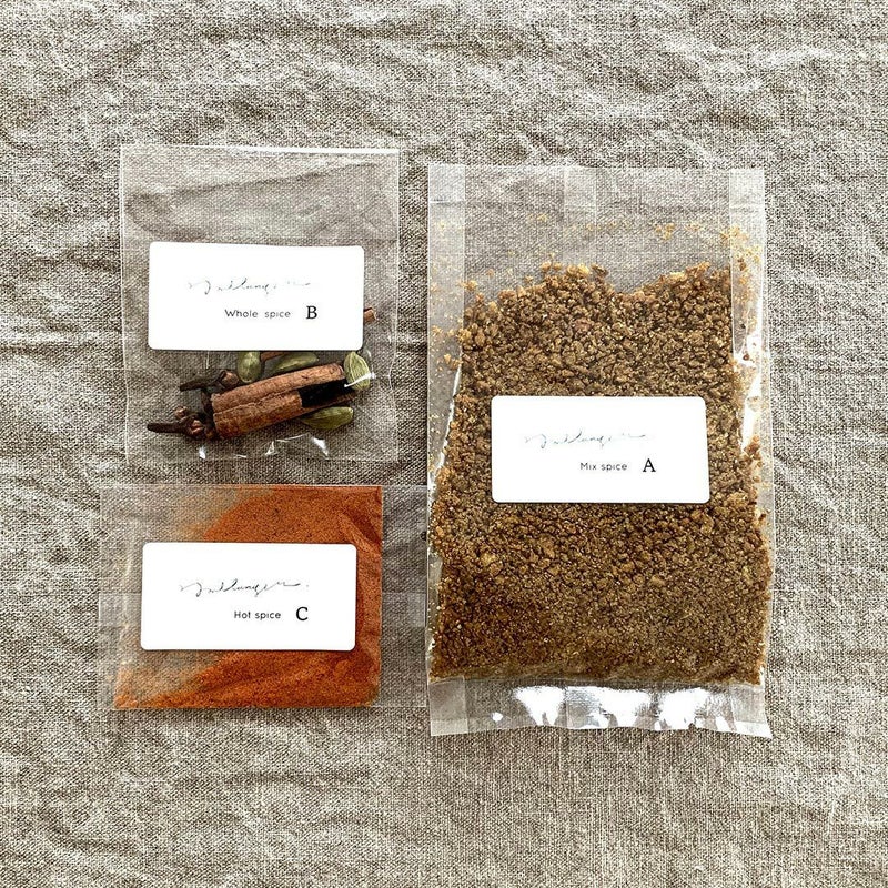 スパイス専門店 メランジェのスパイスキットは、ホールスパイス、ミックススパイス、辛味をつけるスパイスがセットになっていて、スーパーですぐに手に入るカレーの定番の食材を用意するだけで、本格的なスパイスカレーをどなたでも簡単に作ることができます。