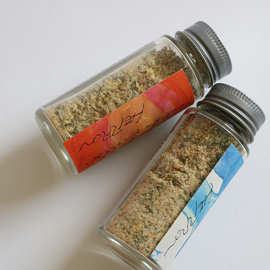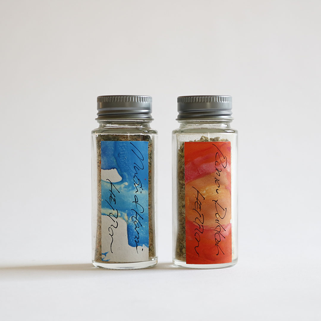 旅先で出会った空気や香りの記憶をもとに、スパイスを調合するブランド「HERRON」の、2種のスパイス塩。
