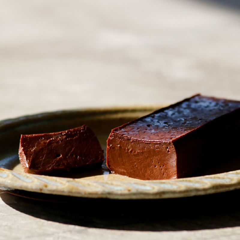カカオの濃厚な味わいに台湾産ジャスミン茶の華やかな香りが口の中に広がります。低温でじっくりと焼き上げているため、しっとりと、とろけるような食感をお楽しみください。少しずつスライスして、冷やしても軽く温めても美味しくいただけます。豆乳やカカオバター、米粉などを使ったヴィーガン、グルテンフリーの本格的テリーヌショコラです。