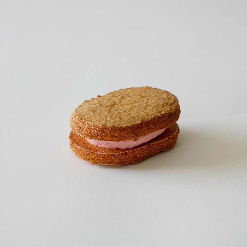 皮付きアーモンドパウダーと米粉で作るグルテンフリーの生地は、外はさっくり中はしっとりとした口当たりの柔らかい食感です。バタークリームは北海道産バターをたっぷり使い、濃厚ながらもあっさりした味わいに仕上げています。