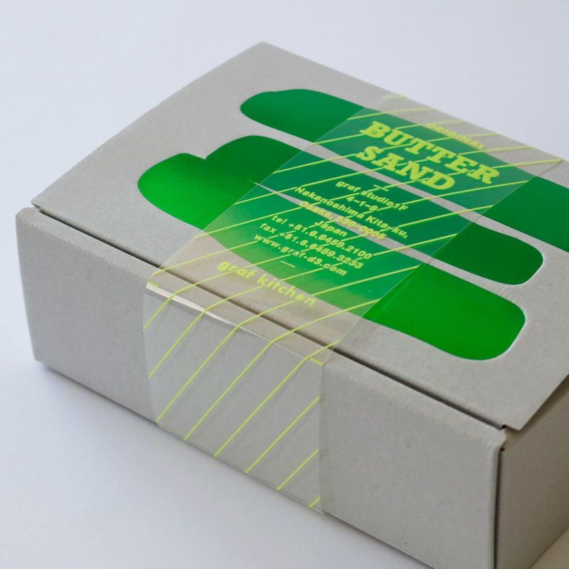 6種のバターサンドが入っているパッケージは、グリーンの箔押しがキラリ。誰かに贈りたくなるような、目を引くパッケージにもこだわりを詰め込みました。ぜひギフトにもご利用ください。