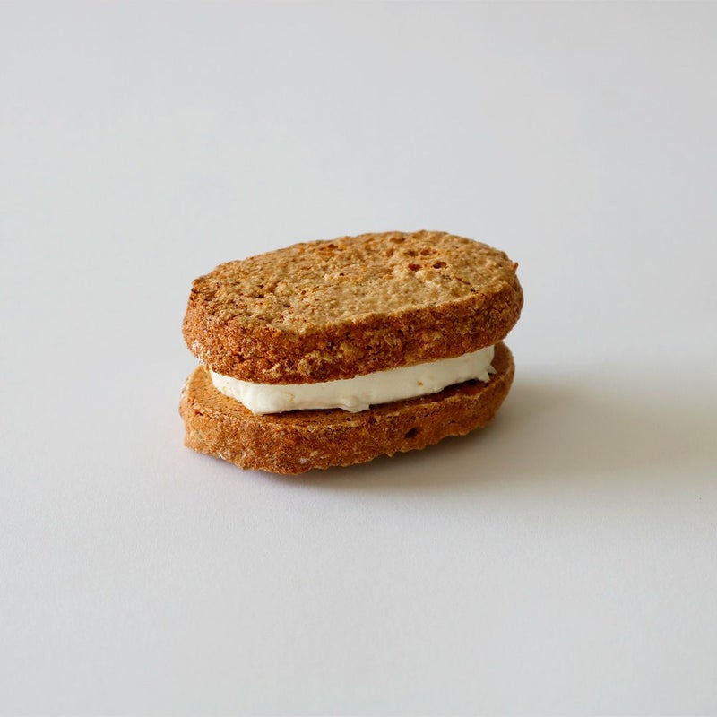 皮付きアーモンドパウダーと米粉で作るグルテンフリーの生地は、外はさっくり中はしっとりとした口当たりの柔らかい食感です。バタークリームは北海道産バターをたっぷり使い、濃厚ながらもあっさりした味わいに仕上げています。