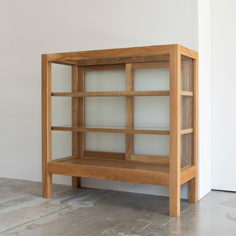 天面と4面がガラスの木枠で組んだシンプルなショーケースは、お気に入りの器や大事につかっている道具、旅先から持ち帰ったものなど、大切なもの(思い出も)が主役となるためのスペースです。眺めること、モノと向き合うことで育まれる心のゆとりや豊かな気持ちになれる時間のある暮らしの提案です。