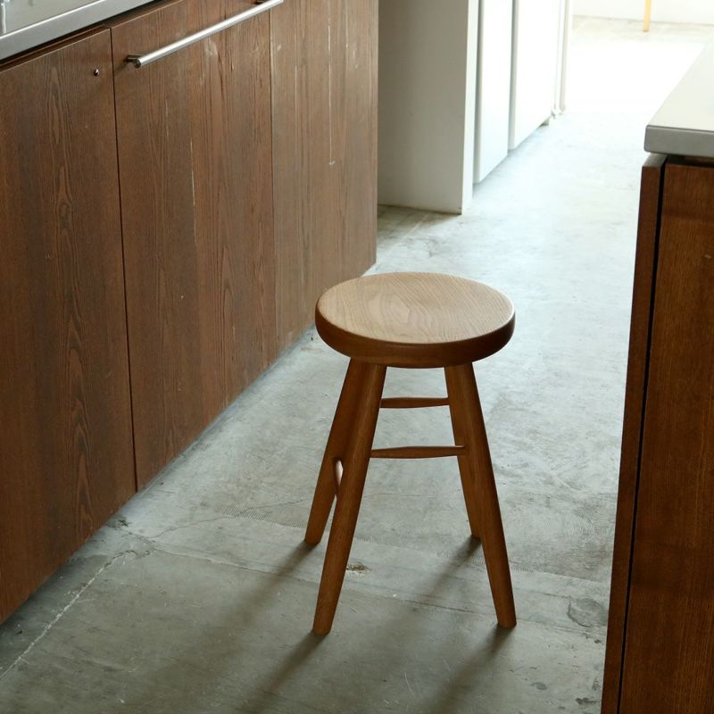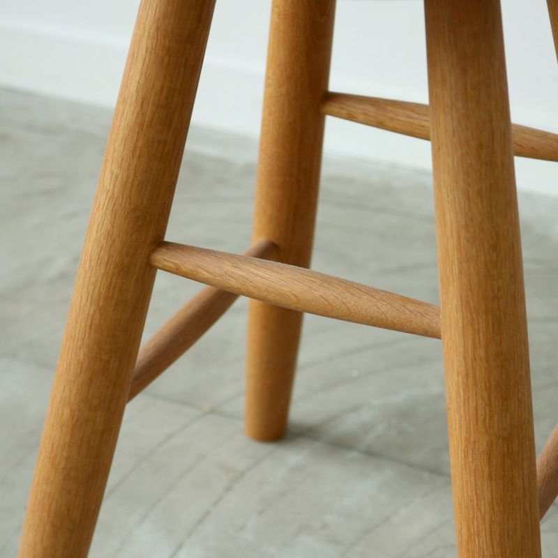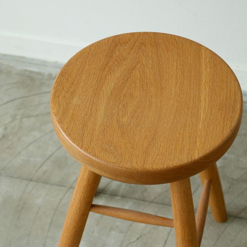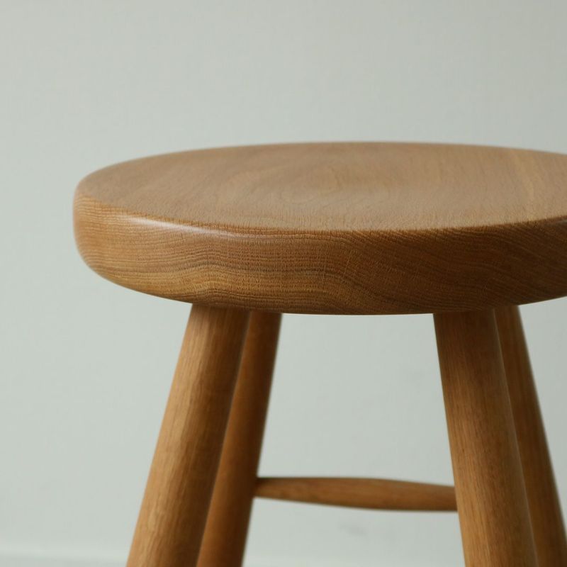 座面に厚みのあるしっかりとしたスツールです。ホワイトオークの無垢材を使用し、しっかりと丸みを帯びた柔らかな触り心地。料理の合間に少し腰掛けたり、急な来客で席を追加したいときなど家に一台あると小回りの利く便利なアイテム。