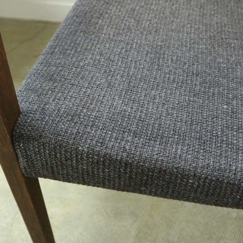 木フレームに特徴のあるものを選び、それに合うおすすめの張地をセレクトしました。木が育つ過程で自然に生まれた美しい木目。個性派のフレームにgraf Brownの染色を施しています。座面には、ボリュームがあり耐久性にも優れたFlaxのファブリック。バックコーティング仕上げで耐久性にも優れています。落ち着いたグレーが全体的にモダンな印象です。リラックスチェアやラウンジチェアとしてもシンプルなコーディネートで合わせていただきやすいチェアです。