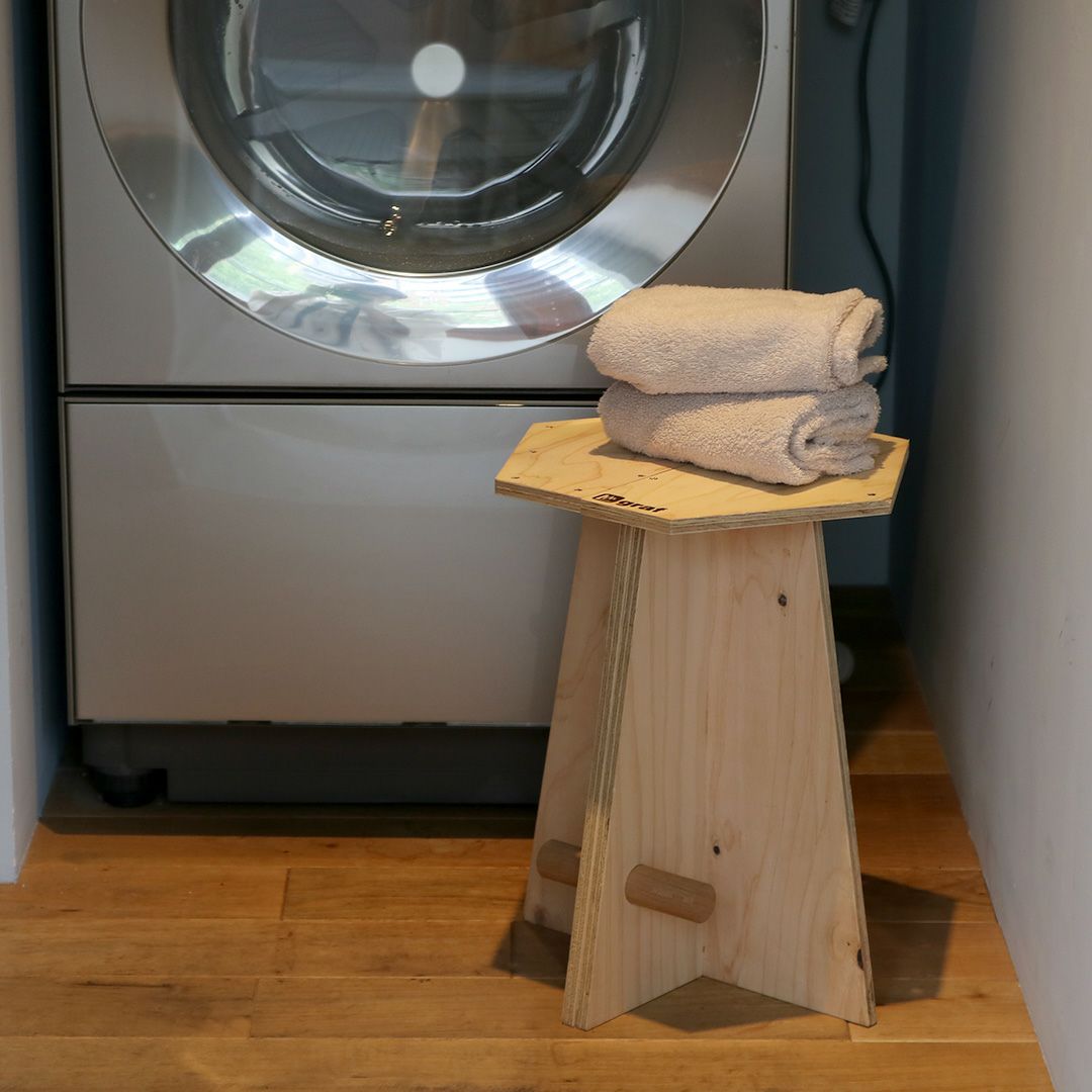 小さなスツールなので、脱衣所などのスペースでも邪魔になりません。ドライヤーをかけるときなど、ちょっと腰掛けるのに便利です。軽いので気軽に家中を移動させられます。