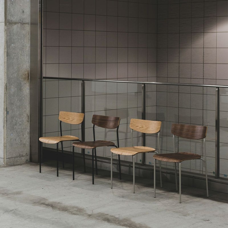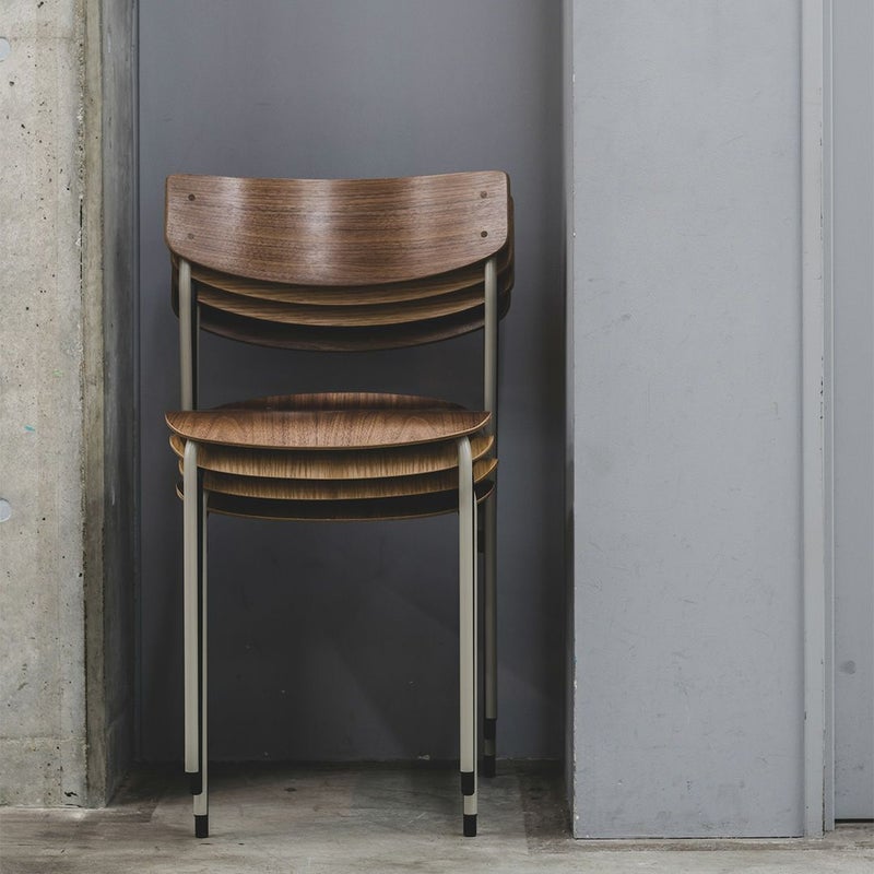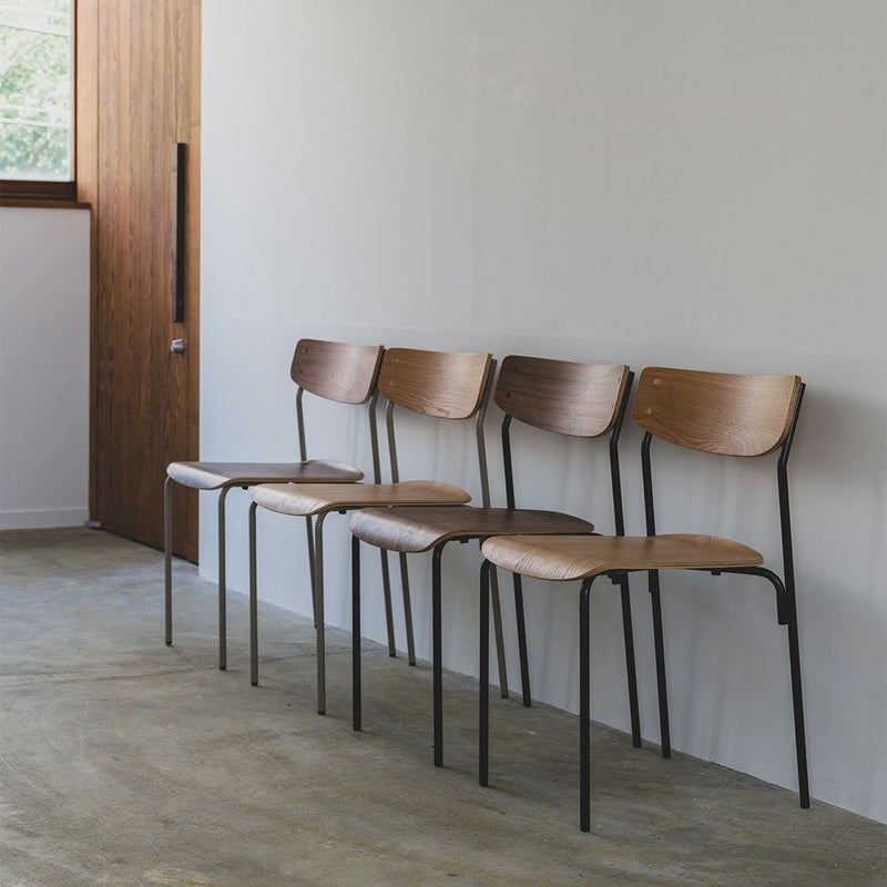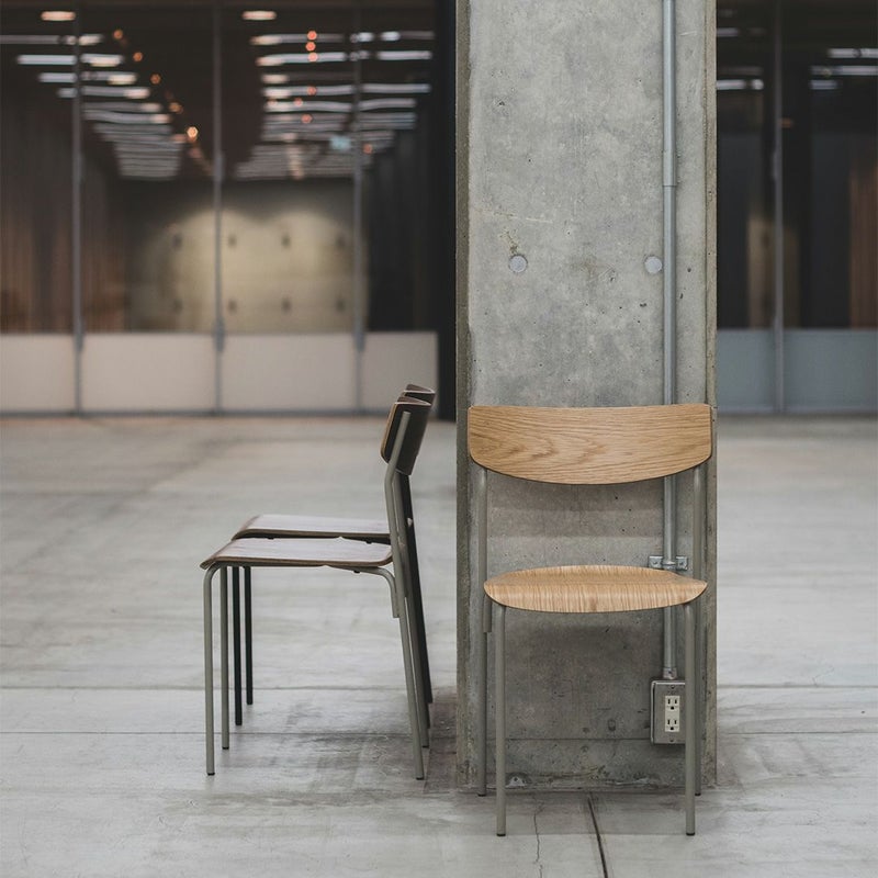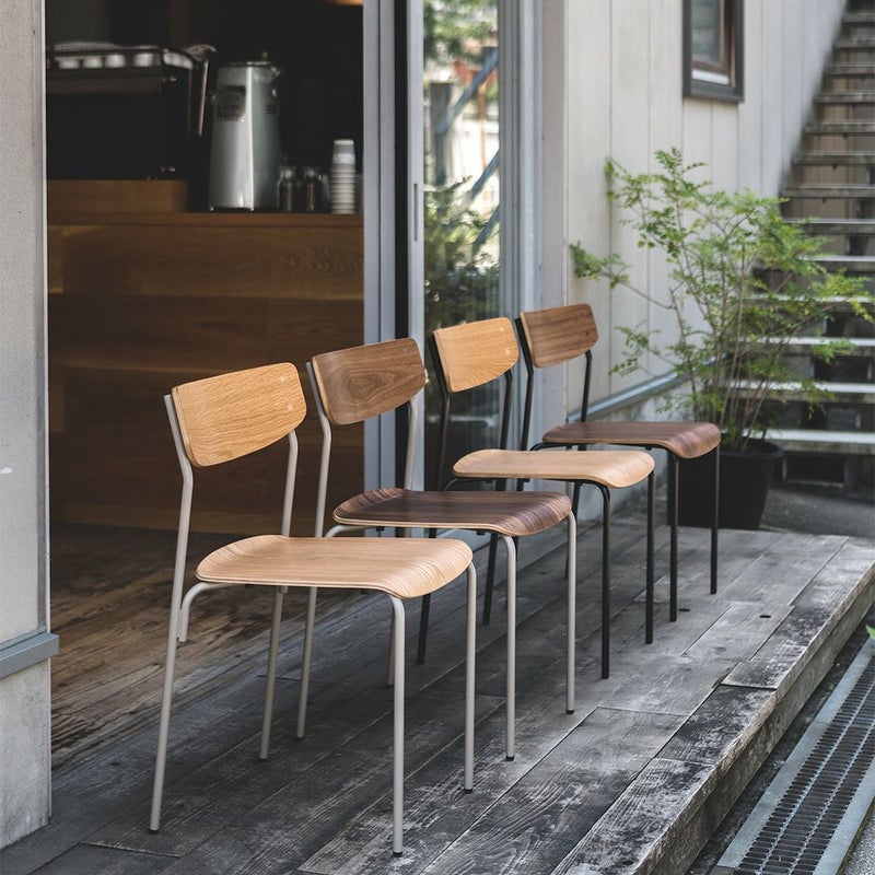 “Tsumi Chair”は、プライウッドとスチールパイプを組み合わせたシンプルで無駄のないフォルムが特徴の、スタッキングができる椅子です。