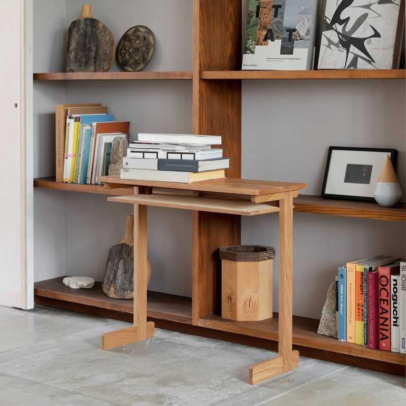 なかでも今回発売する「Place Stand」は、私たちを取り巻く環境が大きく変化するなか、家で過ごす時間をより豊かにしてくれるアイテムとして生まれました。ラタン張りの棚板が印象的な小ぶりなスタンドで、そのコンパクトなサイズ感と軽さから、使う人のライフスタイルに合わせて用途を定めずに使うことができます。シンプルなデザインですが、どこで使おうか、どうやって使おうか、想像するのが楽しくなるはずです。