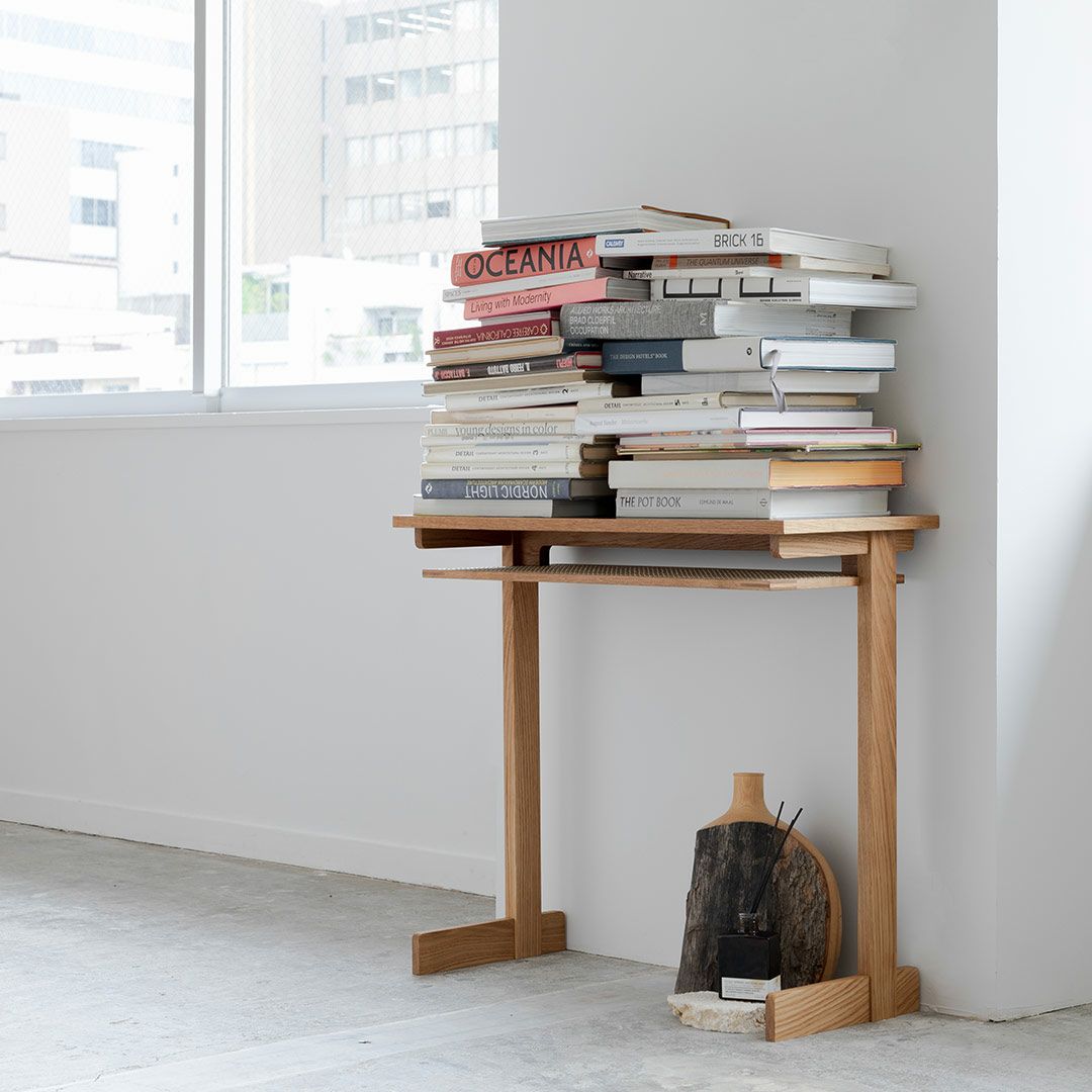 また、窓際や玄関に置いて、植物を飾ったり、鍵などのお出かけ小物を置いたりすることもできます。脚元にはお気に入りのバスケットを置いて、棚板には読みかけの本を入れて、と想像も膨らみます。