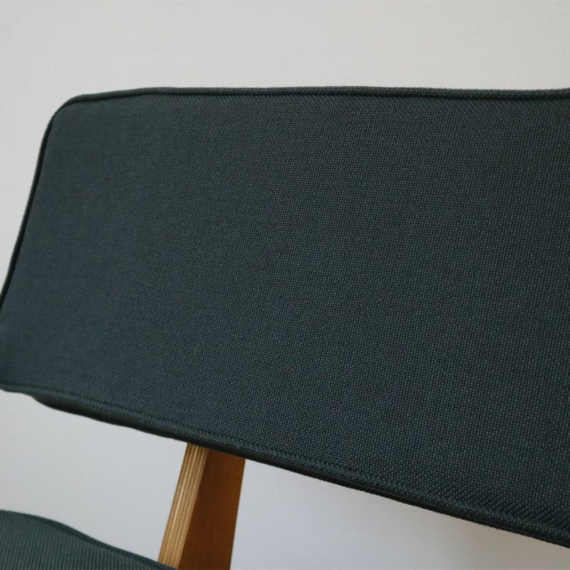 背もたれと座面がセパレートになった、シンプルな構造と適度な堅さの座り心地。木口から覗く積層の表情も持ち味のひとつです。