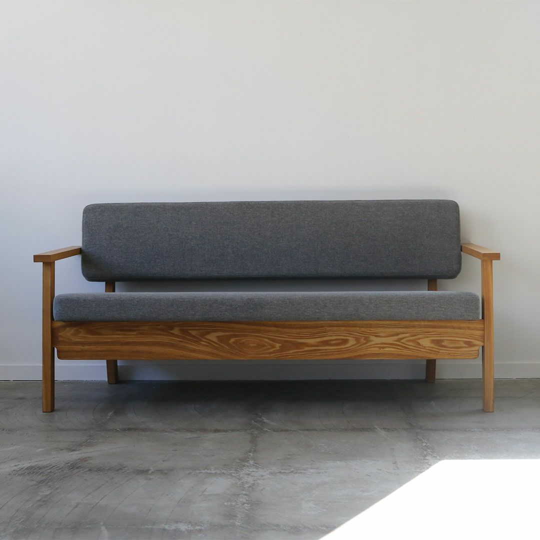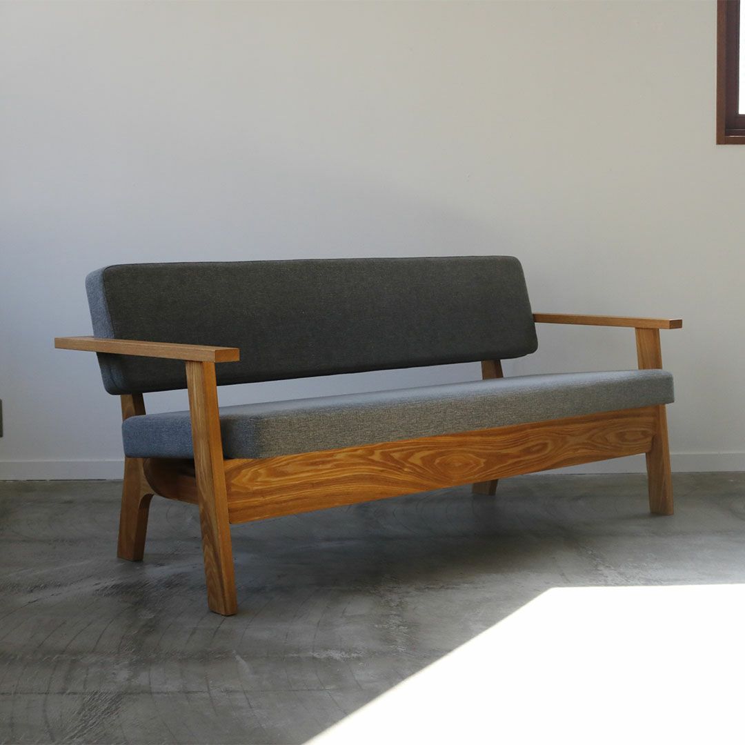 構造の美しさが引き立つ二人掛けアームソファ