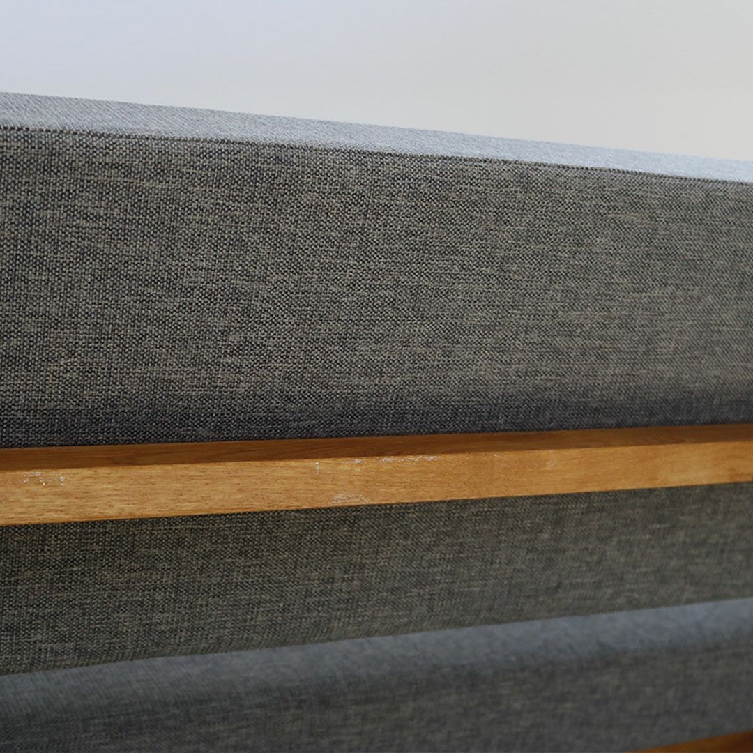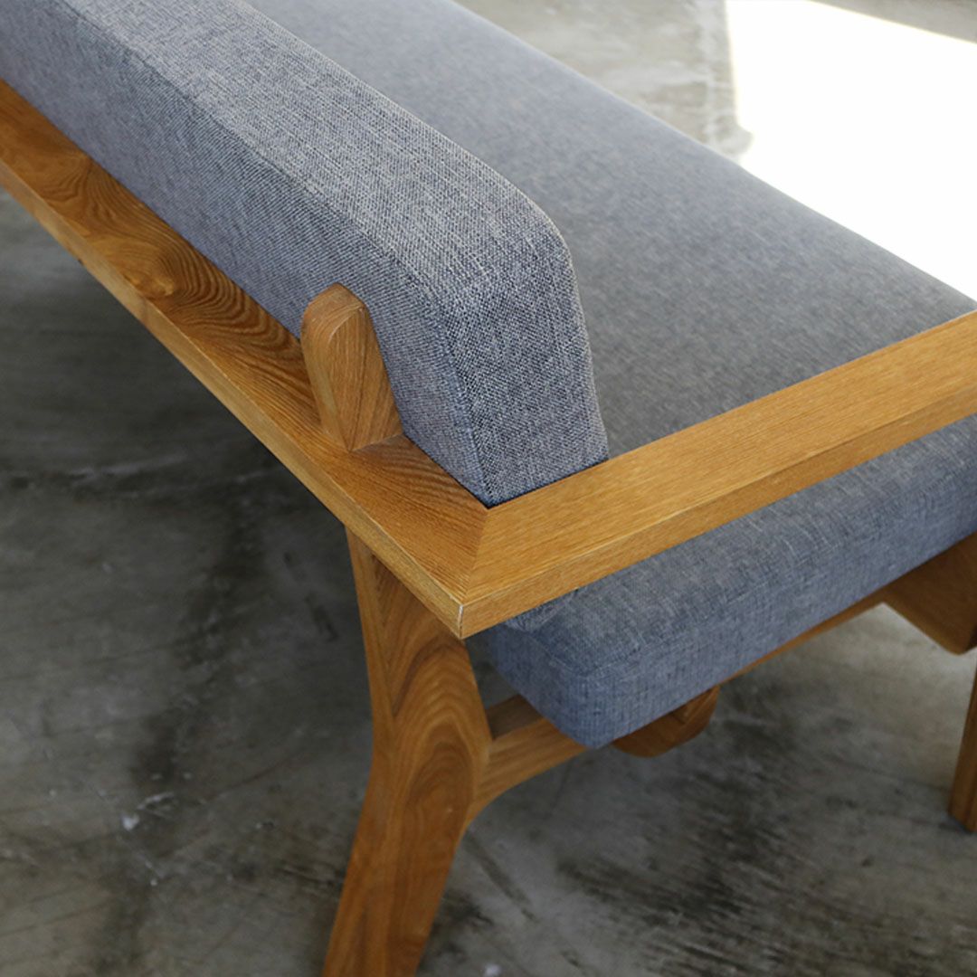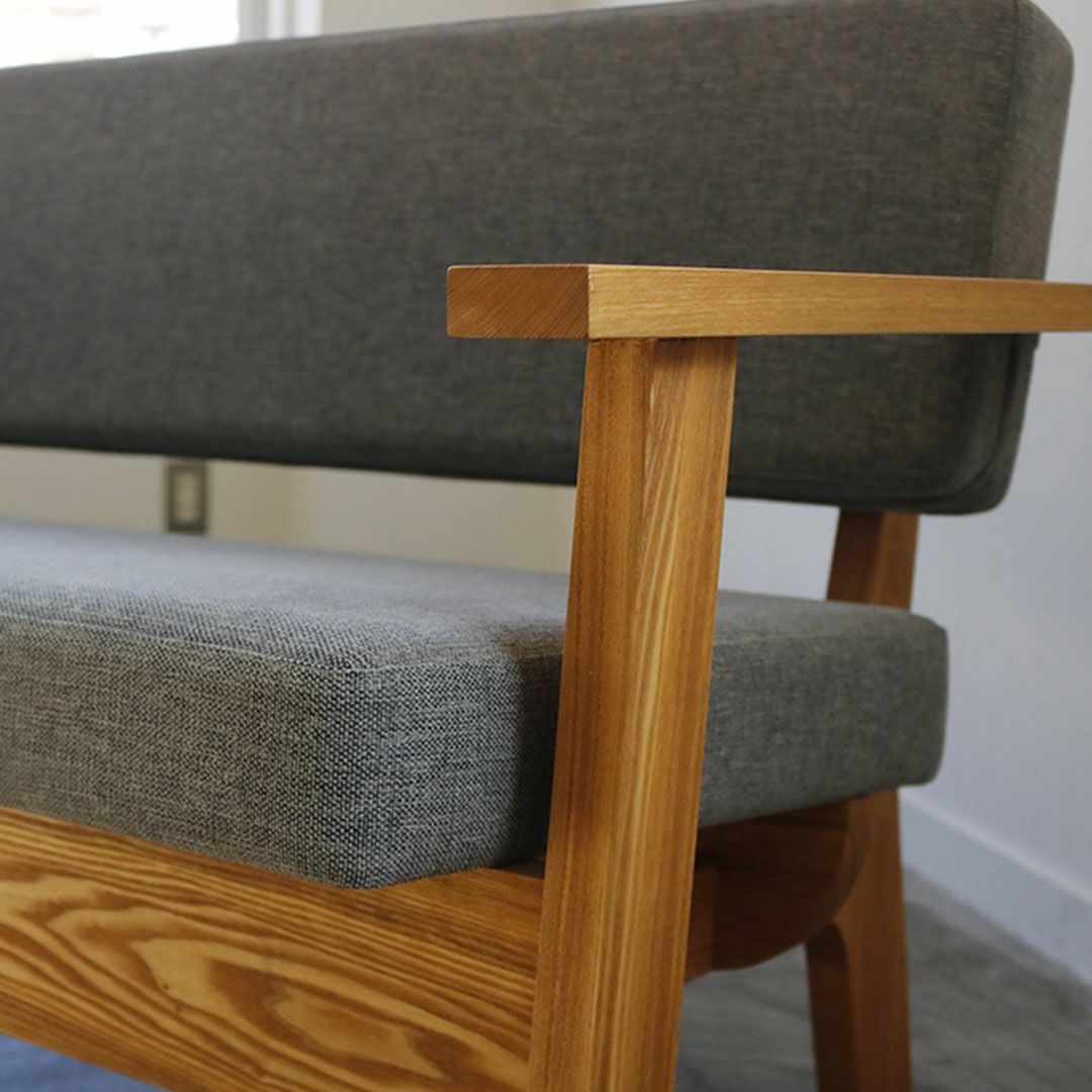 背もたれと座面がセパレートになった、graf オリジナルのベンチタイプの二人掛けアームソファ。