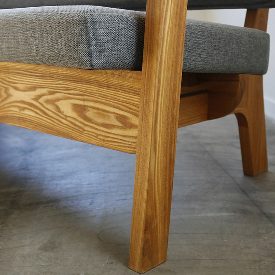 アームから背もたれ、後脚にかけての構造が、眺める角度で違った表情を持っているところも特徴の一つです。
