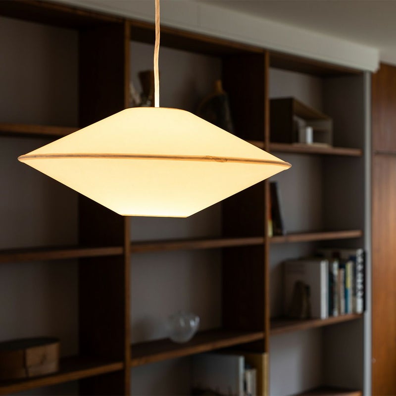 solの特徴は、そろばん型のシェード。どこか懐かしい佇まいのシェードは、発光面が斜めになっていることで、光を部屋にまんべんなく広げてくれます。