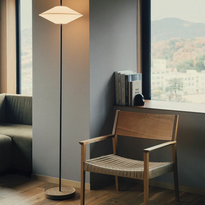 こちらのsol Standは、graf設立当初から愛され続けてきたペンダントライト「sol」から派生したスタンドライトです。光を美しく切り取った、そろばん型のシェードが印象的で、灯りが点いていない時も佇む姿が美しく、空間の雰囲気を一層引き立てます。シンプルなデザインの中に、温かみと上品さが感じられる照明です。