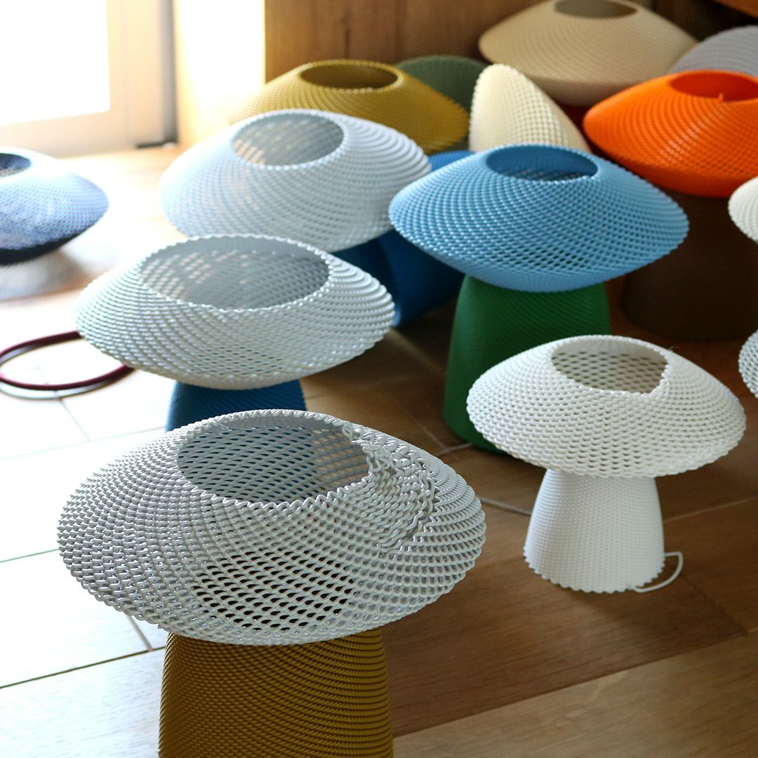 tilde(チルダ)というシリーズのひとつで、「~(チルダ)」の形をした樹脂を溶かして編むように積み重ねることで、樹脂でありながらも温かく柔らかな表情を作り出すことができる特殊な技法を用いています。