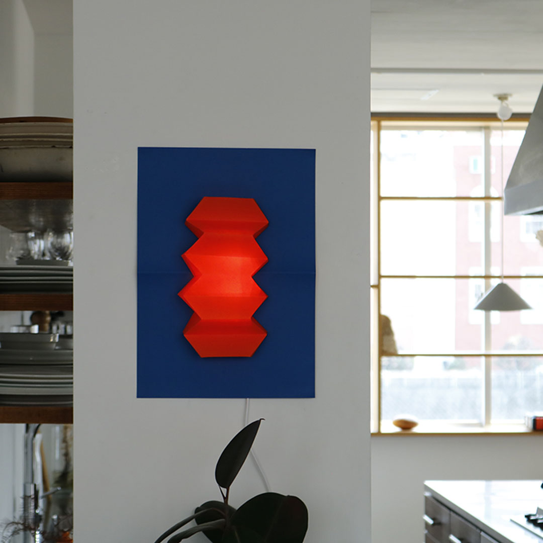 好きなデザインの照明を、好きな場所にぺたっと貼りつける。部屋を照らす照明器具でありながら、部屋を彩るポスターでもある。そんな自由さと余白を持たせた照明になっています。