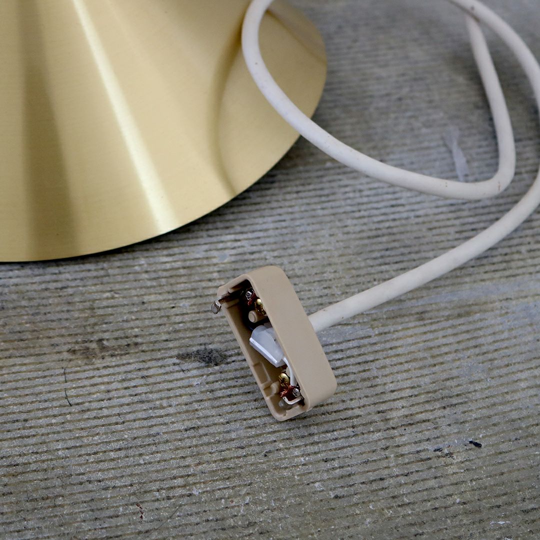 円形のアルミ板を回転させながら”へら”と呼ばれる工具で成型する【へら絞り】の加工技術を使って1点ずつ製作する、grafのオリジナルランプ“waft”。