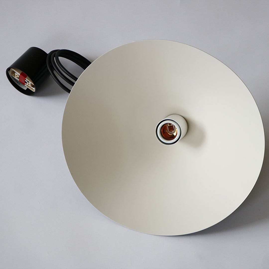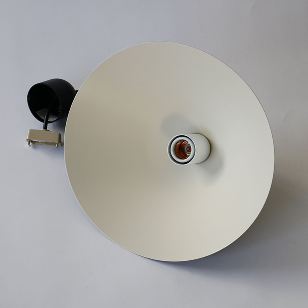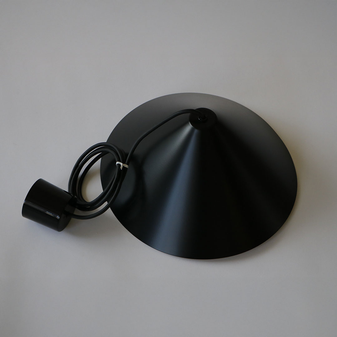 円形のアルミ板を回転させながら”へら”と呼ばれる工具で成型する【へら絞り】の加工技術を使って1点ずつ製作された、grafのオリジナルライト、waft(ワフト)。