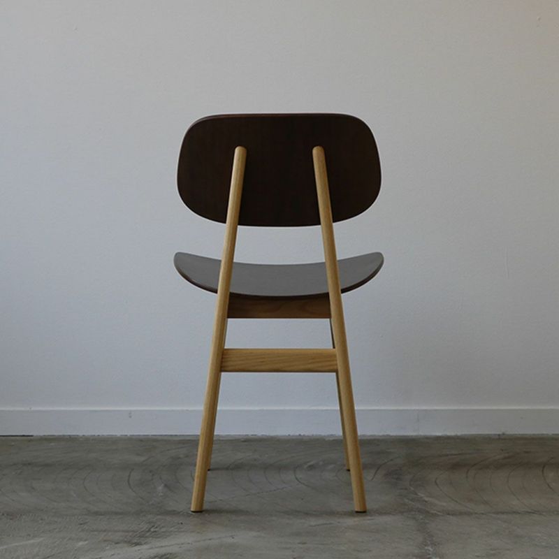 フレームには強度のあるホワイトアッシュを、背と座の板にはウォールナットを使用。