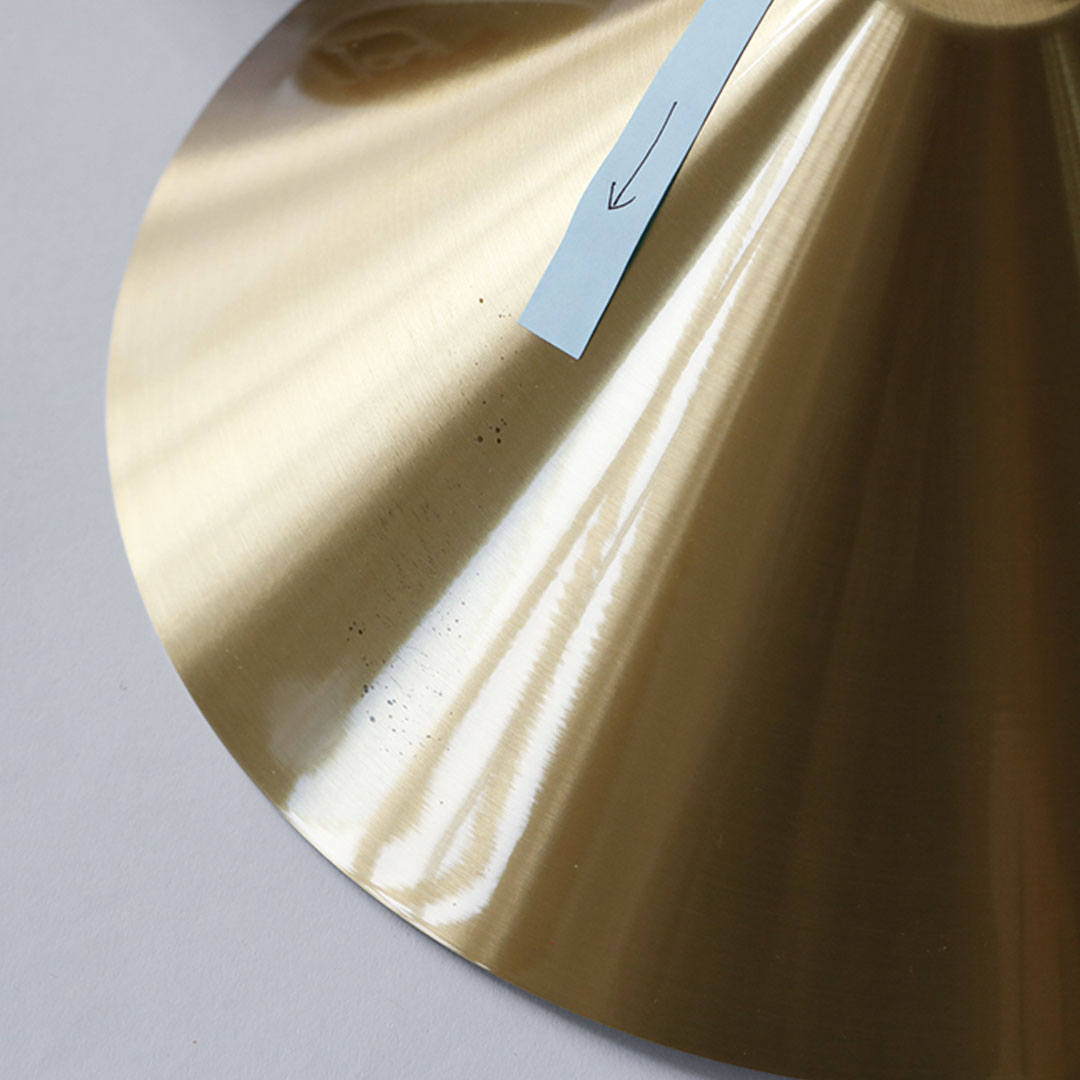 円形のアルミ板を回転させながら”へら”と呼ばれる工具で成型する【へら絞り】の加工技術を使って1点ずつ製作する、grafのオリジナルランプ“waft”。