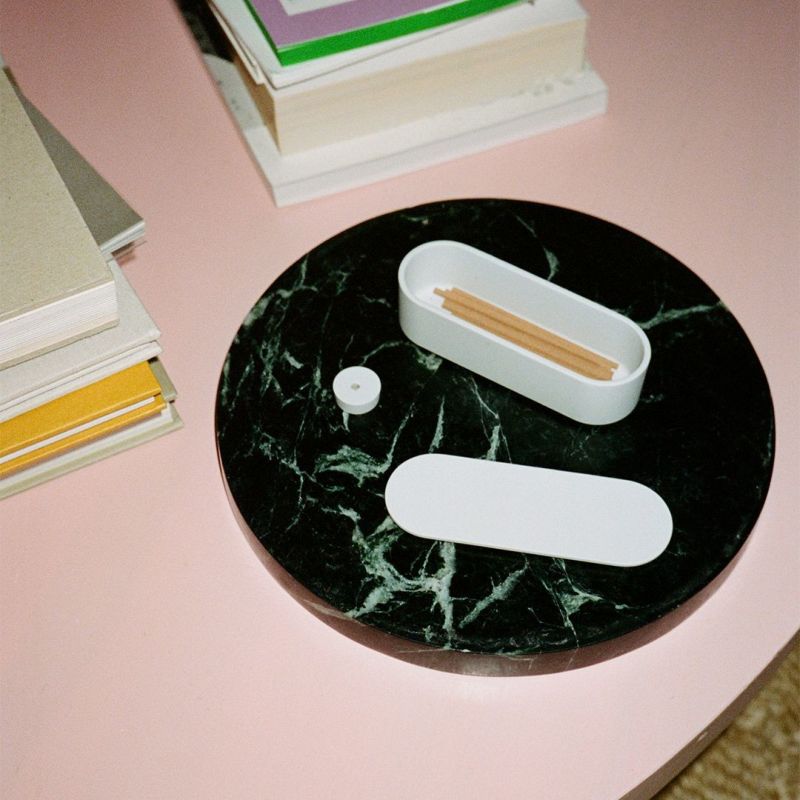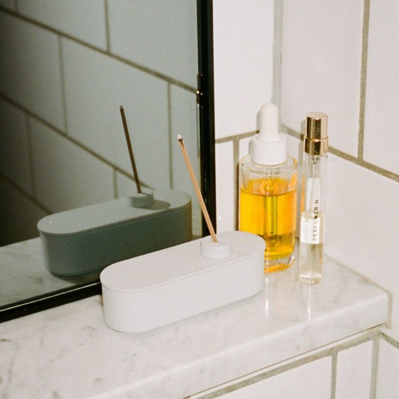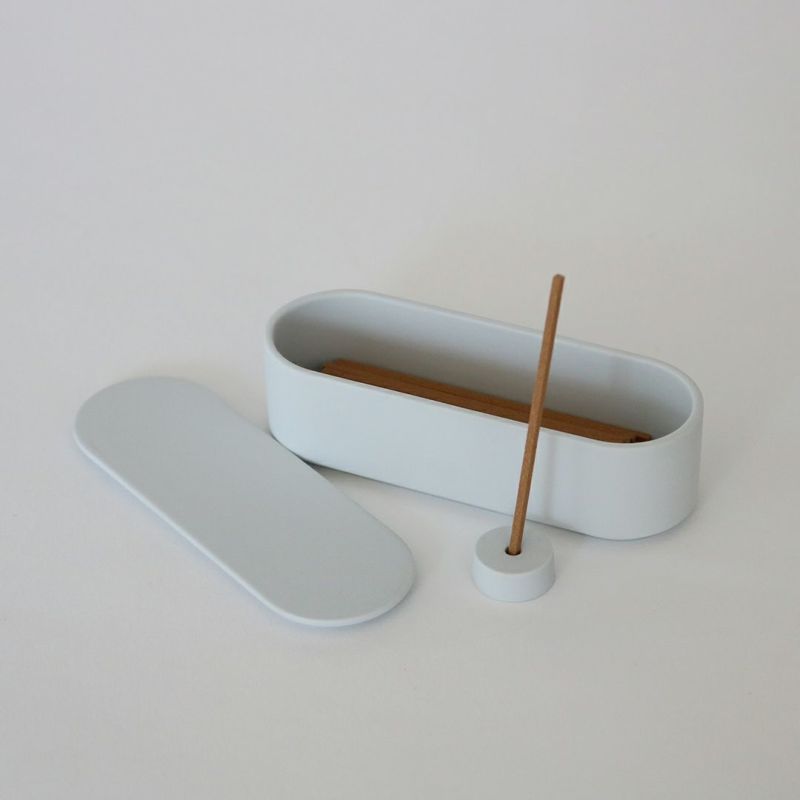 TYシリーズ同様の淡いグレーの磁器で作られた容器は、さらりとした質感とシャープなシルエットで静かに佇み、お香を楽しむ時間をより特別なものとしてくれます。1本15分程で燃焼しますが、その後も心地のいい香りがお部屋を包み込みます。お香立てもセットになっていますので、ぜひ一緒にご利用ください。