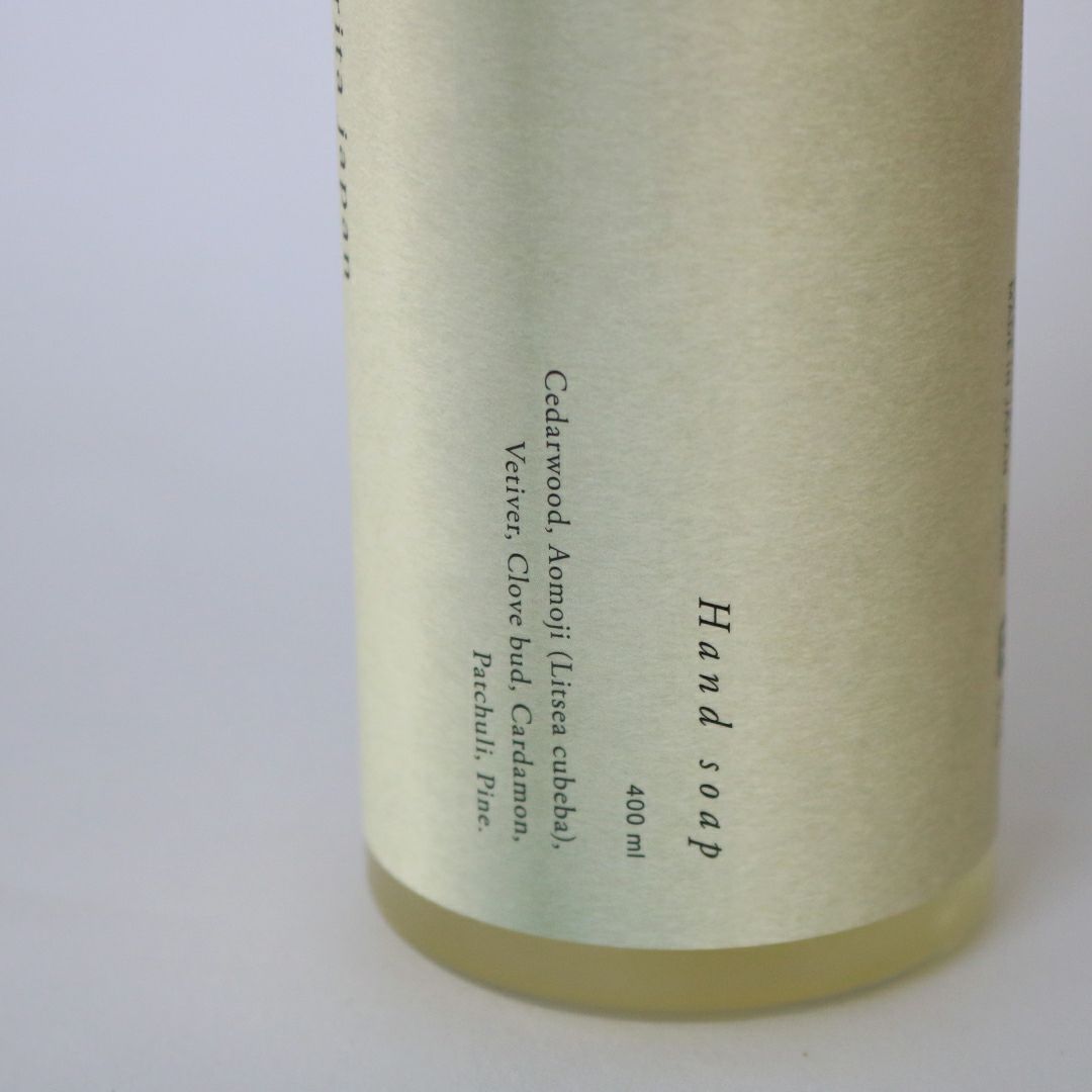 松の香りをベースに、リトセア、カルダモンなどのビビットな素材を加えて、ウッディかつ鮮烈な香り。まったく新しいものでありながら、最初からここにあったような哀愁さえも感じられるような、まさにブランドのシグネチャーとなる香りのクリエイションが実現しました。