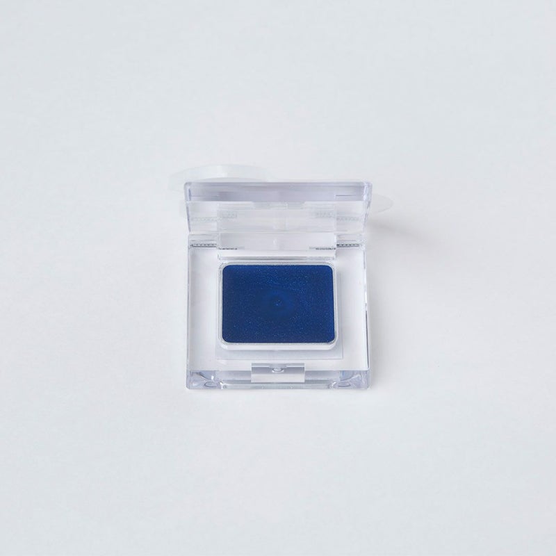 まるで月夜を眺めた時のすこし明るい夜空をイメージした、ミッドナイトブルー。まぶたに乗せた時はマットな質感、濃いブルーに細かなシルバーラメを入れ込みました。筆で取って、アイライン使いもおすすめです。
