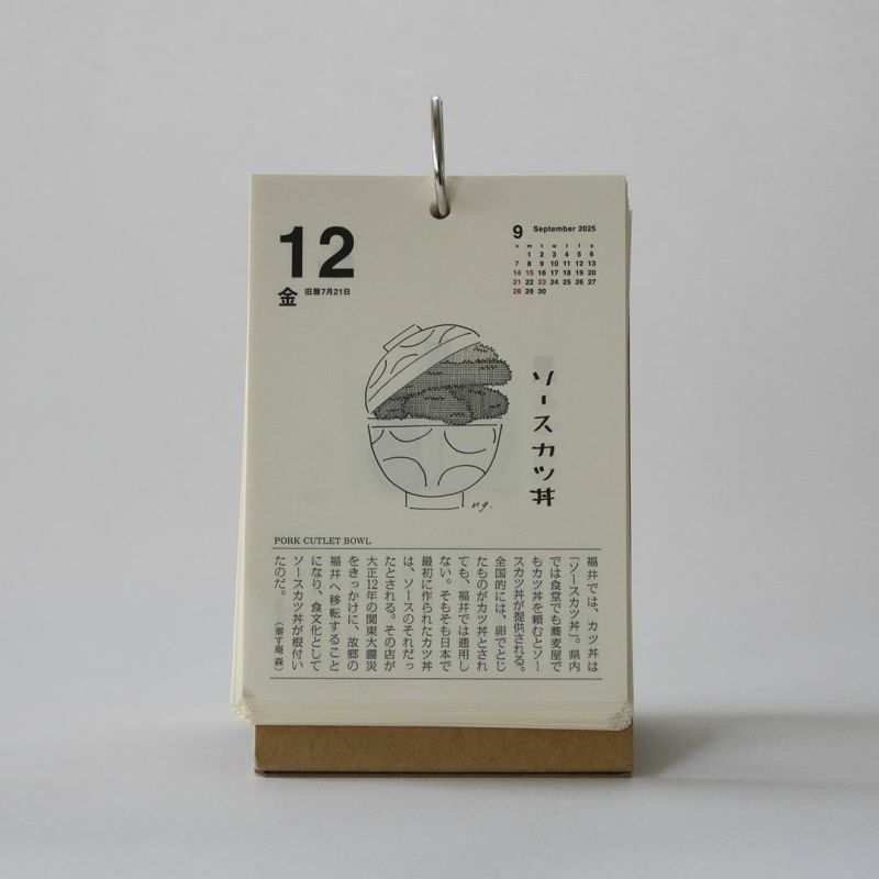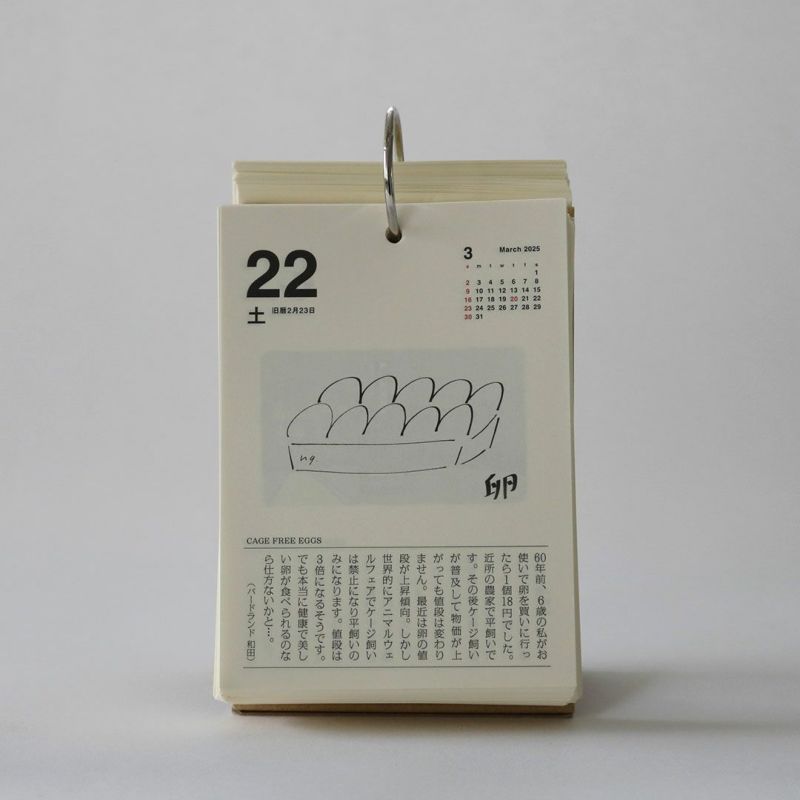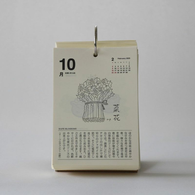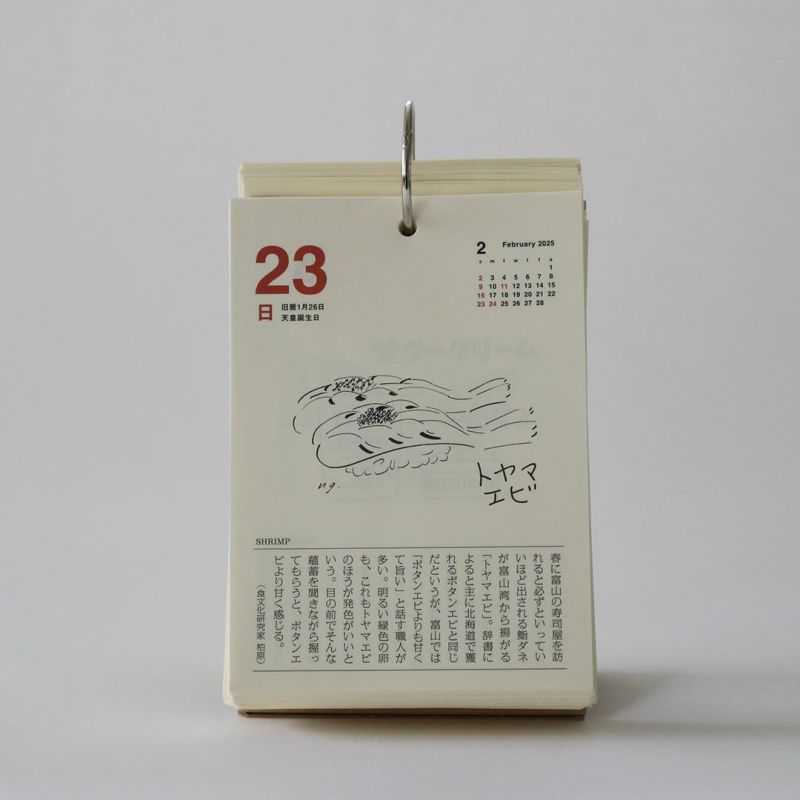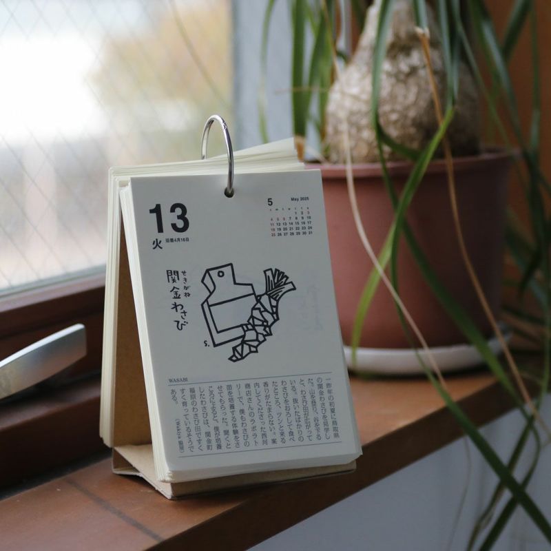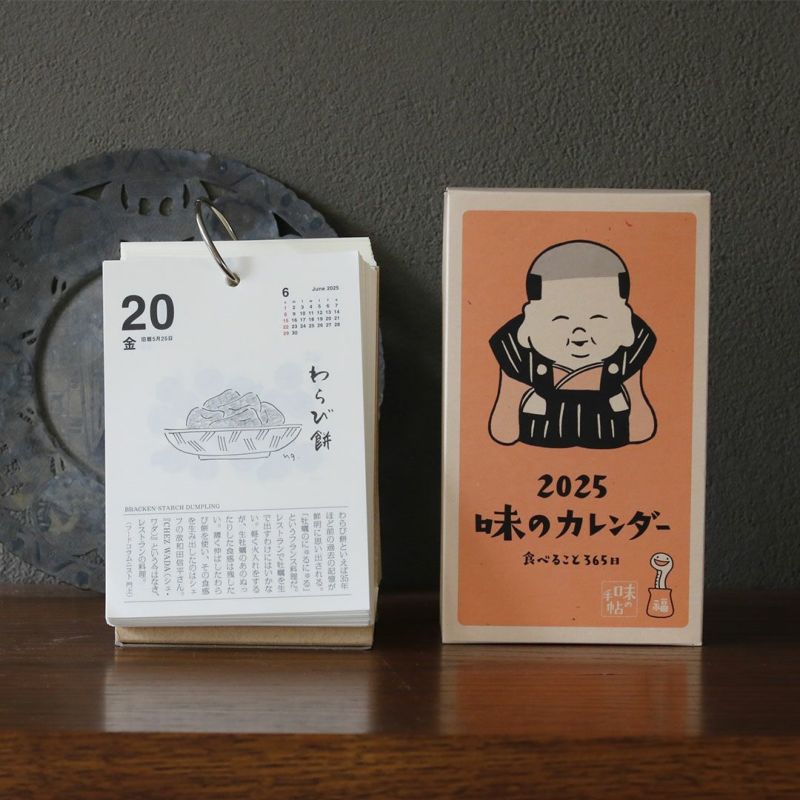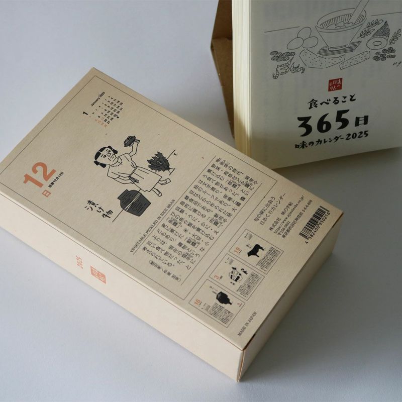 昭和43年に創刊された食の月刊誌『味の手帖』が手がける「日めくり卓上カレンダー2025」です。「食べること365日」とタイトルの通り、365日美味しいに出会える日めくりカレンダーです。日本各所の美味しいものや文化を紹介。ときには世界にも目を向けたり、食べるための道具を取り上げたりもします。私たちは食べて暮らして生きていく、その当たり前の中から豊かさを少しずつ摂取していると気付かされます。