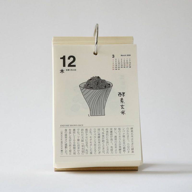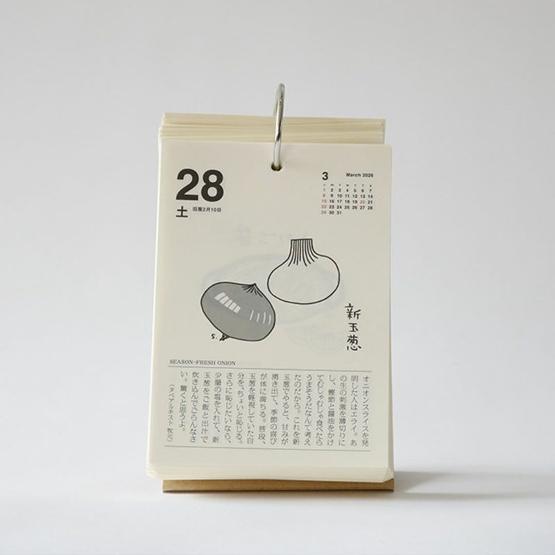 昭和43年に創刊された食の月刊誌『味の手帖』が手がける「日めくり卓上カレンダー2026」です。「食べること365日」とタイトルの通り、365日美味しいに出会える日めくりカレンダーです。
