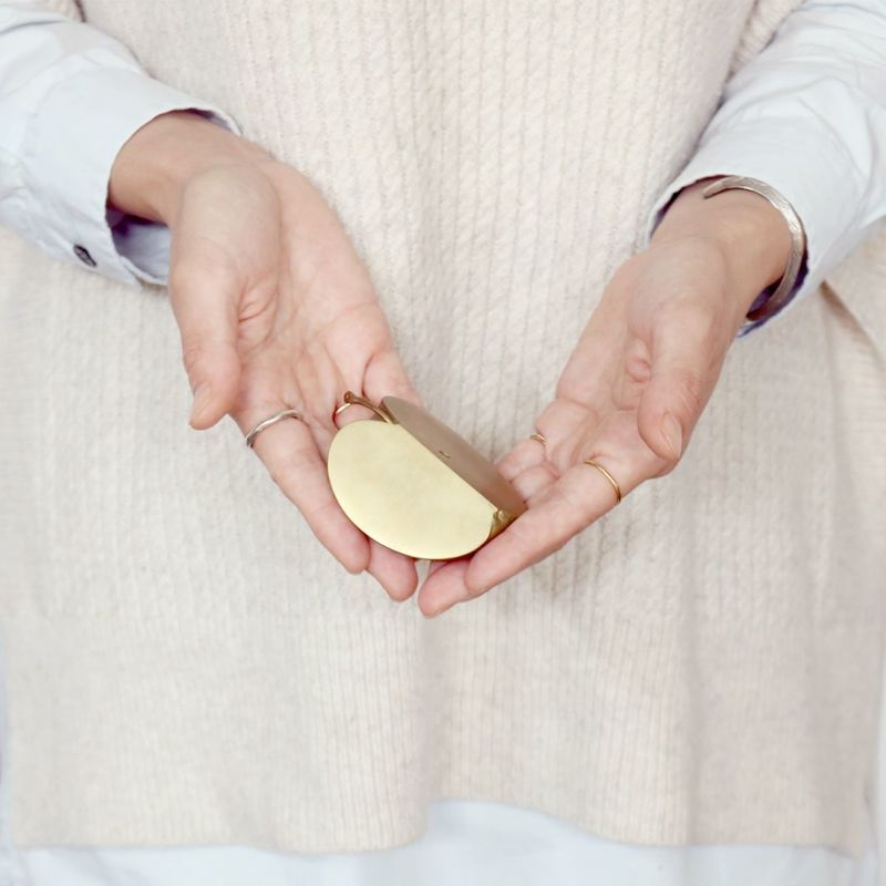 棚にただ置いておくだけでも存在感があります。品のある真鍮の質感とモノの存在感が相まってかわいらしいネーミングとともにいつも傍においてほしくなるアイテムです。