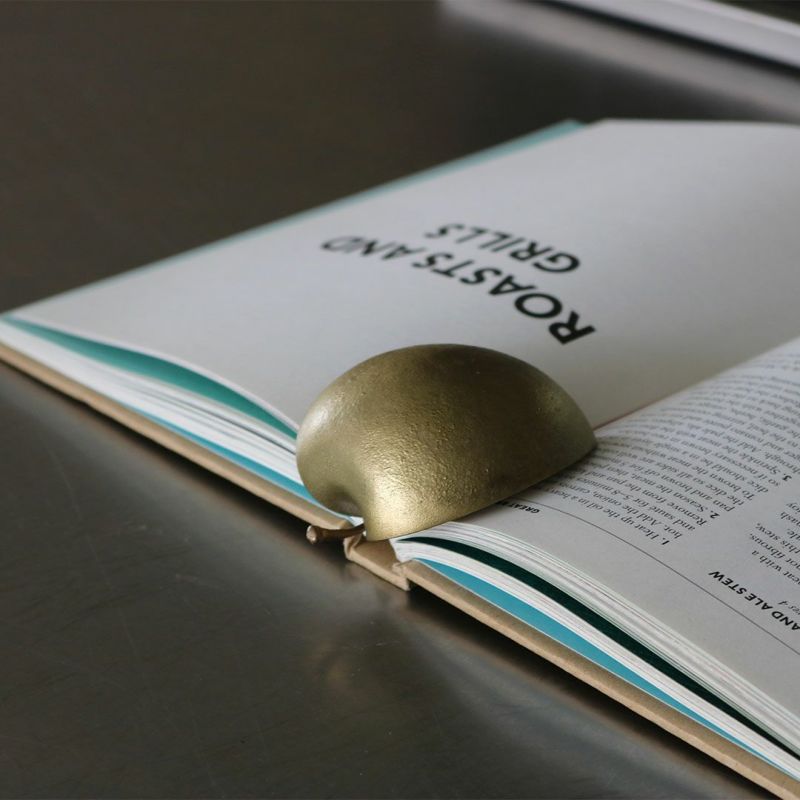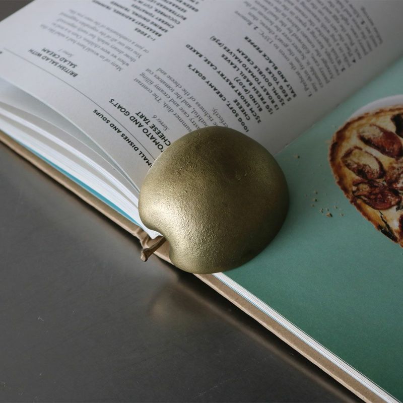 レシピ本を開いて置いておきたいとき、りんごのカット面が本にぴったりフィット。しっかりとした重さは、分厚い洋書を読む際にも役立ってくれます。