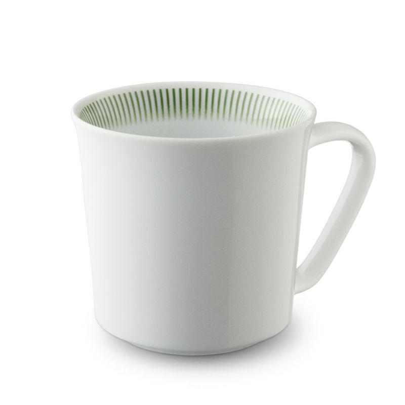 強度のある高密度の陶土を用いた美しく艶のある白磁のカップに、印象的なエッジのカラーはBlue/Pink/Greenの3色。