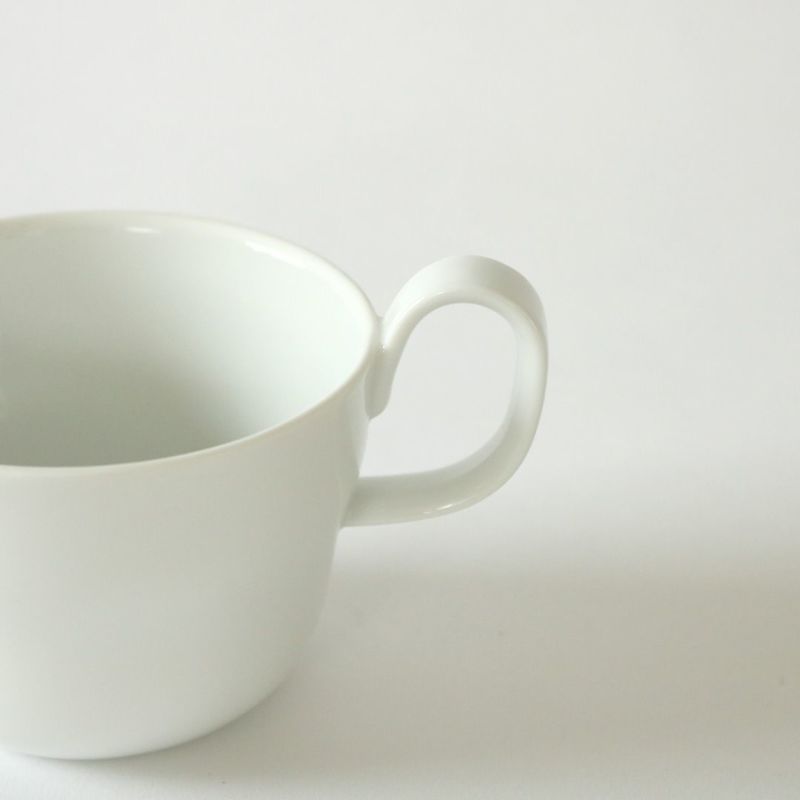こちらはハンドルが特徴的なカップ。食卓に佇む姿は美しく、より美味しいティータイムが過ごせそう。220mlの容量で日常使いしやすいサイズ感です。