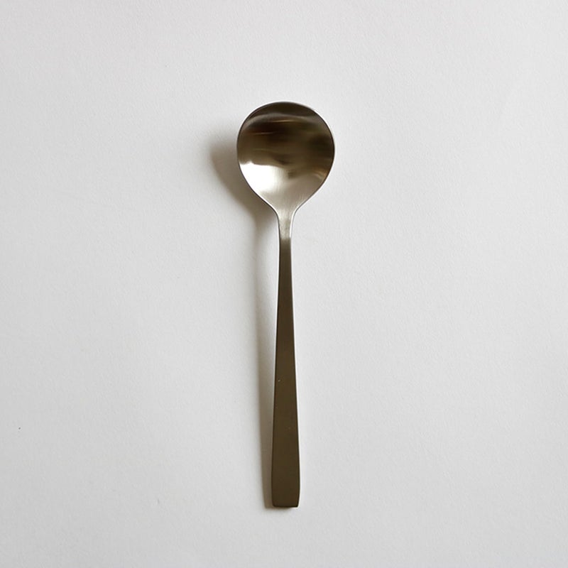 スプーンを口に付けてスープを飲むとき、こぼれにくい形を考えて作られたスープのためのスプーンです。盛りつけ用のサーバースプーンとして使うのもおすすめです。