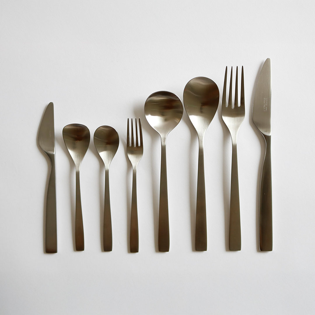 grafがデザインを担当し、新潟県燕市の金属洋食器メーカー、燕振興工業株式会社でつくられているカトラリー「SUNAO」。
